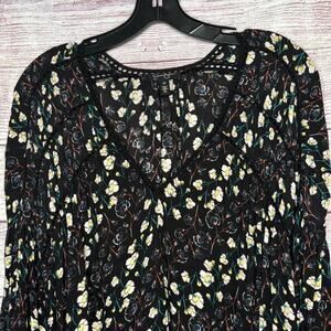 Jessica Simpson Floral Crinkle Fabric Crochet Lace Long Sleeve Top Size 3XL Plus