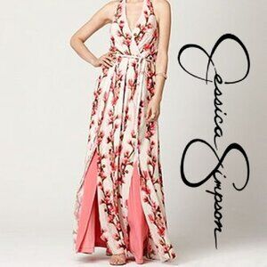 Jessica Simpson Floral Dress Maxi Halter Top Size XS Extra Small Bridal Wedding