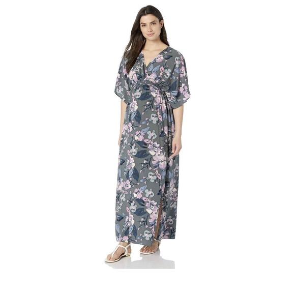 Jessica Simpson Women Maternity Green Pink Floral Wrap Maxi Dress Size Medium