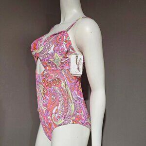 Look pretty in paisley with Jessica Simpson's stunning one-piece swimsuit.