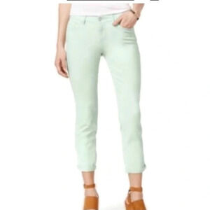 Jessica Simpson forever rolled skinny jeans in a light mint green in size 27. Mid rise, front zip and button closure and a cuffed hem. Like new condition, they have been washed but never worn. Approximate measurements are in photos. From smoke free and pet free home.