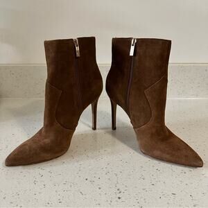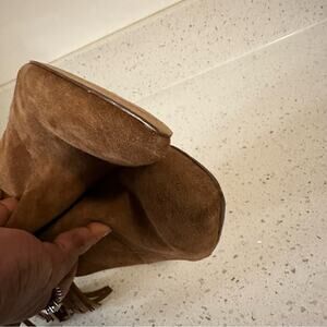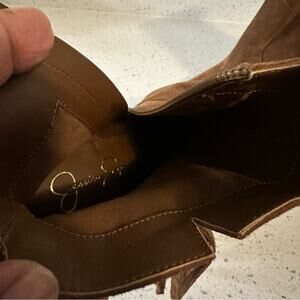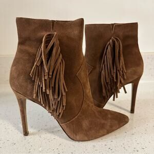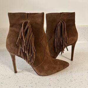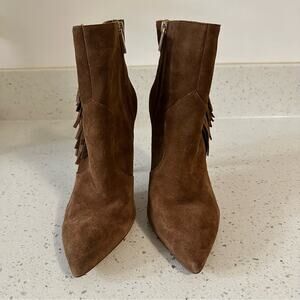 Jessica Simpson Fringe Brown Suede Pointed Toe Heeled Ankle Booties Boots