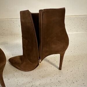 Jessica Simpson Fringe Brown Suede Pointed Toe Heeled Ankle Booties Boots 9M/40