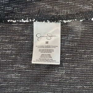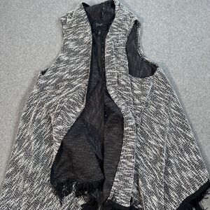 Jessica Simpson Fringe Sweater Vest Women's Medium Boho Black White Sleeveless