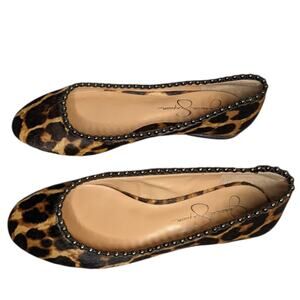 Jessica Simpson Gillian Calf Hair Cheetah Black Flat Leopard, pre owned, gently wore.