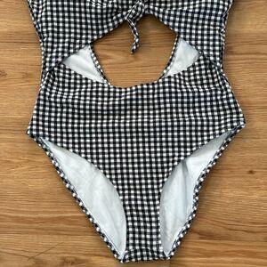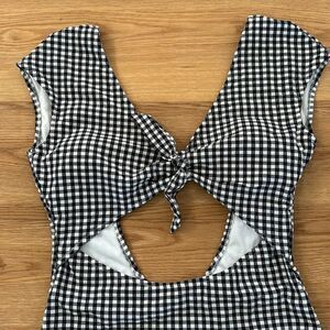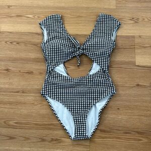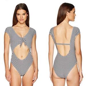 Jessica Simpson Gingham Retro Bow Cutout Cap Sleeve Maillot Swimsuit Medium