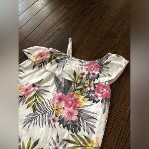 Jessica Simpson Girls 6X Ruffled One-Shoulder White Tropical Palm Dress - VGUC!