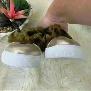 Faux fur slip-on metallic sneaker, padded collar and insole for added comfort, Synthetic upper & lining.