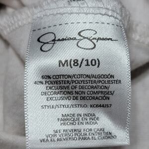 Jessica Simpson Girls White Crop Tee w/ Flare Short Sleeves "Take It Easy" - Size Medium (8/10) or Ladies XS. The Letters are a raised fabric, as shown in picture 3. Excellent condition. Comes from a smoke free home.