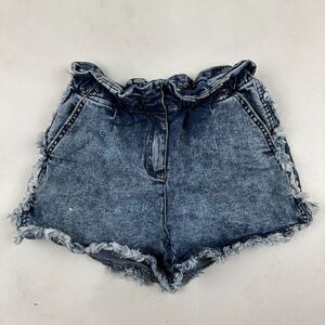 Jessica Simpson Girls Sz L (12) Acid Wash Paperbag Denim Shorts Elastic Waist
