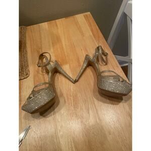 Jessica Simpson Glitter Gold Platform Strappy High Heel Sandals, S99