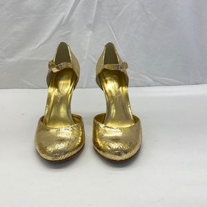 Jessica Simpson Gold Crackle Leather Heels Size: 5.5