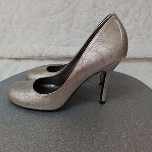 Jessica Simpson Gold Patent Leather Stilleto Pumps Shiny Metallic Closed Toe 7B