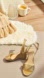 Stylish gold wedge sandals with braided straps. Perfect for any occasion.