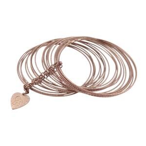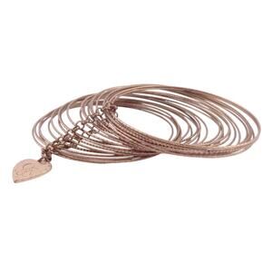 Jessica Simpson Goldtone Textured Bangle Bracelet Set with Heart Logo Charm