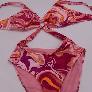 Femme Pink Good Vibrations O-Ring One-Piece Swimsuit in Size Small by Jessica Simpson.