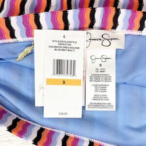 Brand new with tags Jessica Simpson Got The Groove Blue Mist Multi Striped Bikini Size Small.