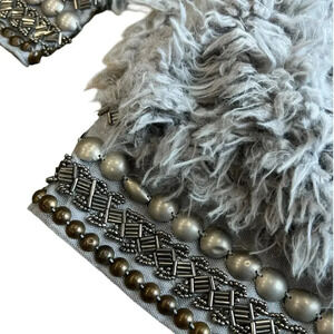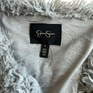 Jessica Simpson Gray Faux Fur Open Front Studded Kassidy Jacket S