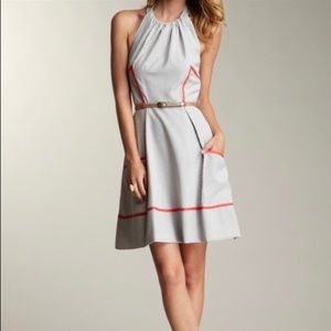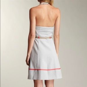 Jessica Simpson Gray Striped Seersucker Halter dress