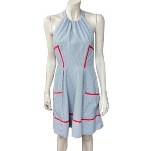 Jessica Simpson Gray Striped Seersucker Halter Dress