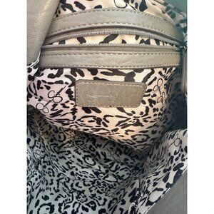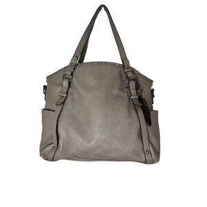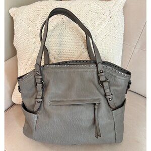 Jessica Simpson Gray Studded Faux Leather Tote Bag With Feather Charm Officecore