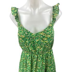 Jessica Simpson Green Floral Sleeveless Ruffle Strap Cami Camisole Midi A-Line Tank Dress XS