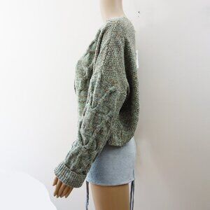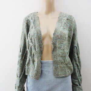Jessica Simpson Green Marled Chunky Knit Cropped Cardigans (M) NWT!