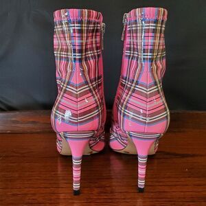Jessica Simpson High Heel Ankle Boots Pink Plaid Size 6