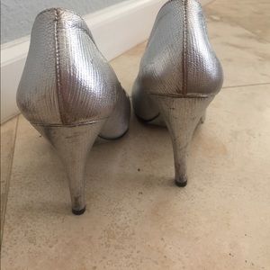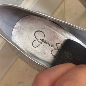 Sexy Jessica Simpson high heels in silver. Worn once, good condition. Small scuffs as seen in photo. Padded removable inserts for comfort. These heels will make that dress you want to wear look even better!