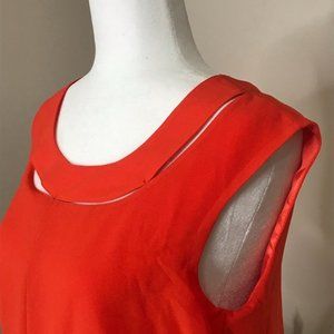 This vibrant orange dress is gorgeous! It’s so easy to wear and the peek a boo neckline add the perfect touch. The belt is attached and the dress is fully lined.
