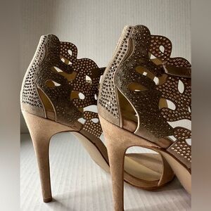 Jessica Simpson Hipp Taupe Faux Suede sparkly Rhinestones Strappy Heels
