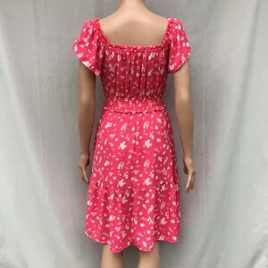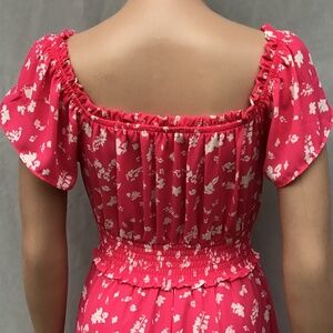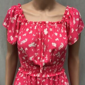 Jessica Simpson Hot Pink Floral Off Shoulder Midi Dress Xsmall Tiered Milkmaid
