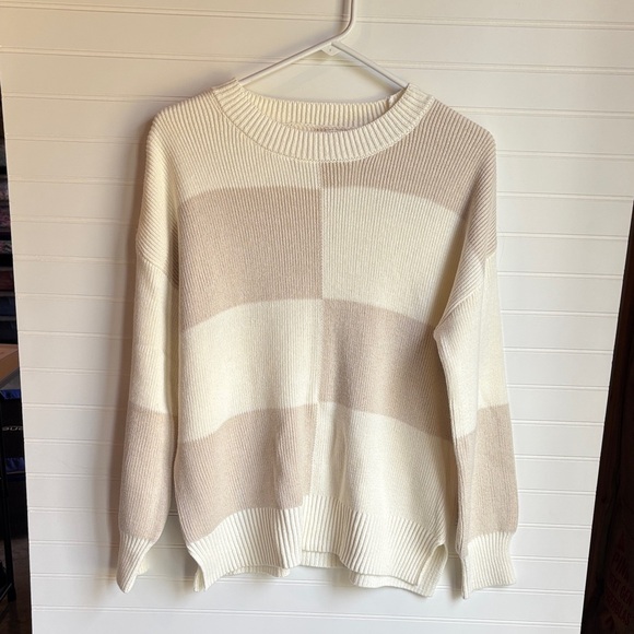 Jessica Simpson ribbed knit pullover in a soft ivory shade. Crew neckline and classic rib detailing. Lightweight knit with everyday versatility.