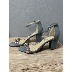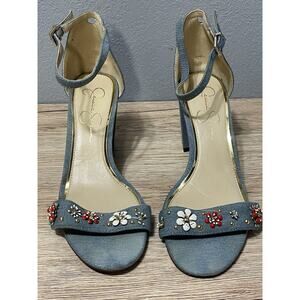 Jessica Simpson JP Moreeno Strap Denim Floral Blue Heels Size 10