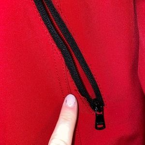 Great condition zip up jacket! Has a black faux fur collar and zipping pockets. Size medium. I pointed out some threading near the pocket that is loose.