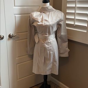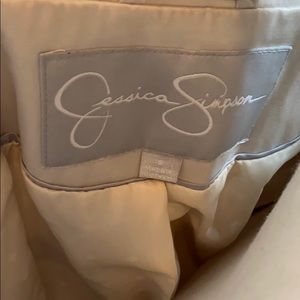 Like New Jessica Simpson Cream Colored Trench Coat. Tag says S, fits more like a M. Functioning buttons and belt and pockets. Silky and beautiful. No rips or stains. Smoke free household. Gorgeous coat