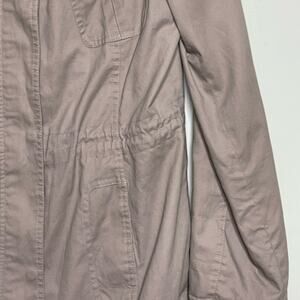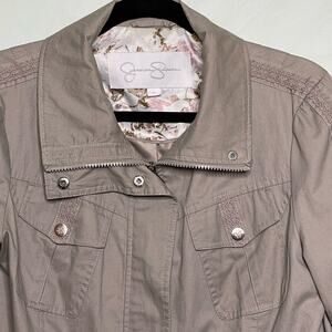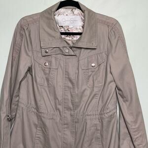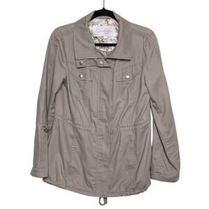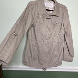 Jessica Simpson Jacket Snap Zip Drawstring Waist Roll Tab Utility Coat Beige M