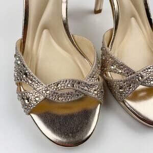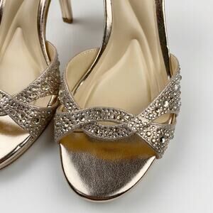 Jessica Simpson Jarilyn Heels Sandals Gold Strappy Jeweled Faux Leather Womens 6