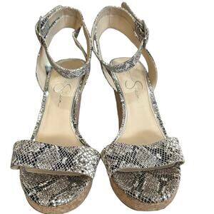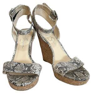 Jessica Simpson Jateen sandal cork wedged faux snake skin Leather size 10