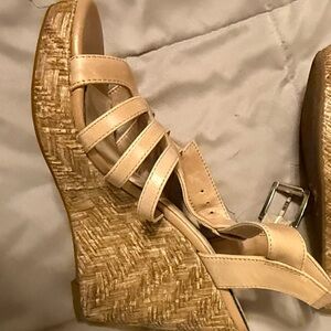 Jessica Simpson Jenna nude gladiator style platform wedge sandals EUC 7.5