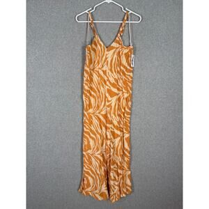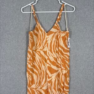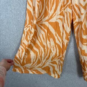 Jessica Simpson Jumpsuit Small Orange Cream Animal Print Zebra Wide Leg Crop Beach Vacation Resort Coastal Adjustable Spaghetti Straps Flowy Loose Boho Bohemian Hippie