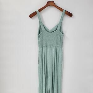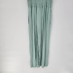 Jessica Simpson Jumpsuit Womens M Green White Polka Dot Wide Leg Smocked Straps
