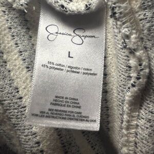 Mixed stripes define a Jessica Simpson top that perfectly balances comfort with a trend-forward style.