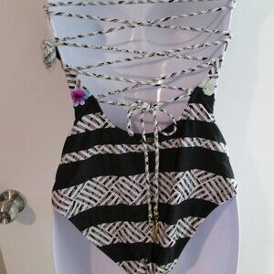 Jessica Simpson Lace-Up Back One-Piece Swimsuit Botanica NWT Sz S