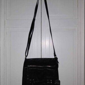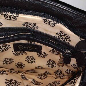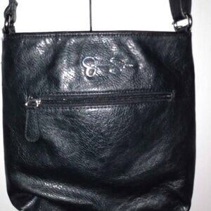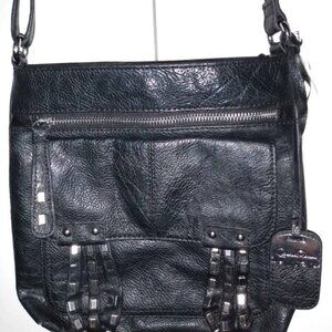 Jessica Simpson black leather large crossbody bag with 5 compartments. 10"X9.5"