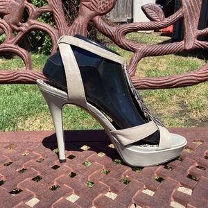 These are beautiful heels with some small callouts, couple of gouges tiny on each heel, and some markings along the side of the shoe. This is a beautiful pair of heels, and they will make a great addition to your closet.