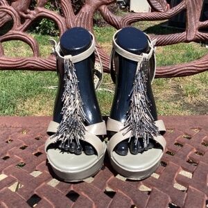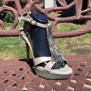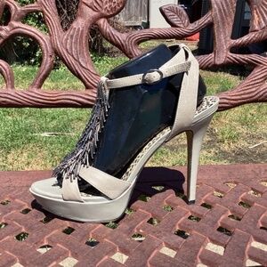 Jessica Simpson Leather Fringe Bennies Platform Pencil Heel Shoes