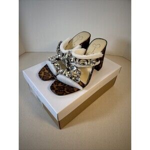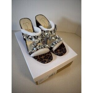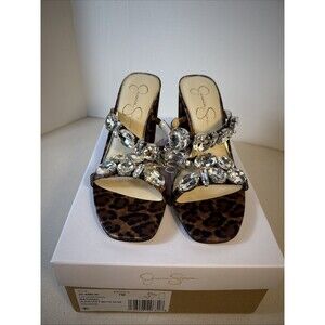 Jessica Simpson Leopard Jewel Embellished Block-Heel Dress Sandals Women’s 7 M