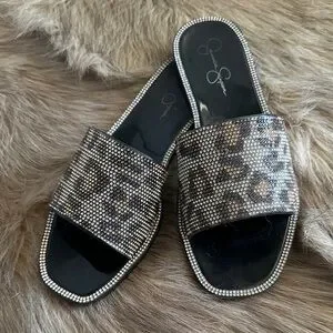 Elegant sandals with leopard print and rhinestone accents. Perfect for a glamorous look. Worn once