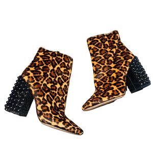 Jessica Simpson Leopard Wexton Studded Block-Heel Booties Size 6